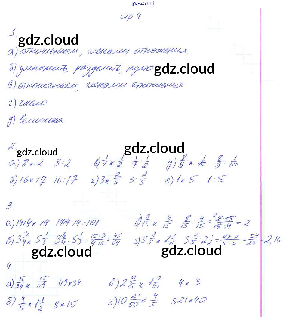 Ответ на задание стр.4 Рабочая тетрадь Математика за 6 (шестой) класс Ерина УМК 2017 Часть 1, 2 ФГОС онлайн и без номера телефона.