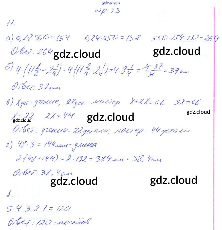 Ответ на задание стр.73 Рабочая тетрадь Математика за 6 (шестой) класс Ерина УМК 2017 Часть 1, 2 ФГОС онлайн и без номера телефона.