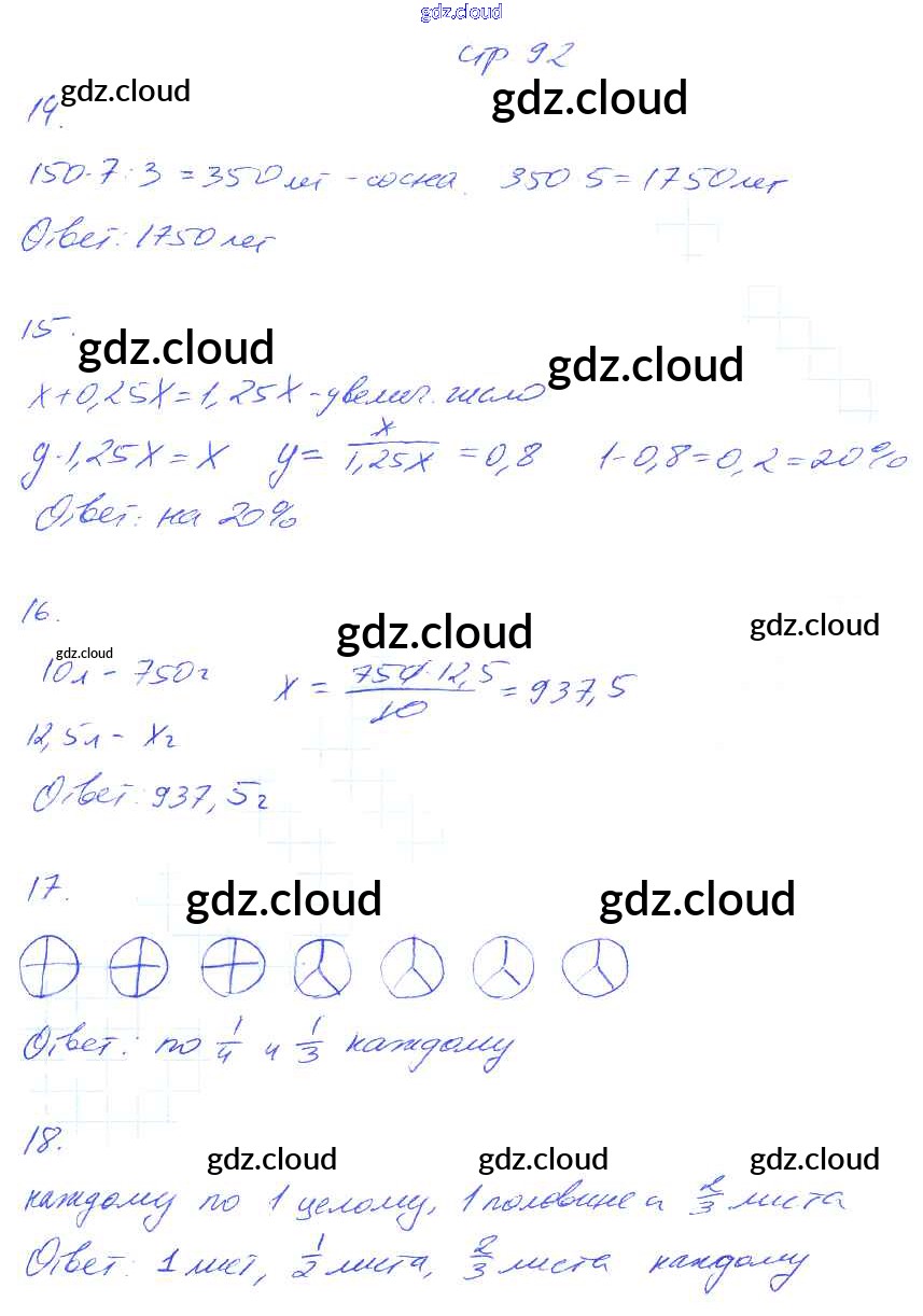 Ответ на задание стр.92 Рабочая тетрадь Математика за 6 (шестой) класс Ерина УМК 2017 Часть 1, 2 ФГОС онлайн и без номера телефона.