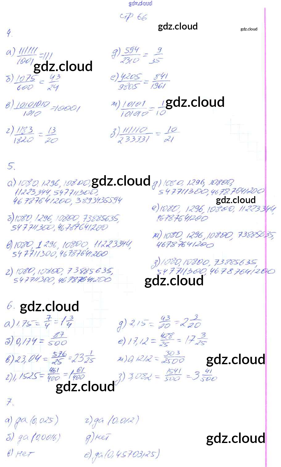 Ответ на задание стр.66 Рабочая тетрадь Математика за 6 (шестой) класс Ерина УМК 2017 Часть 1, 2 ФГОС онлайн и без номера телефона.