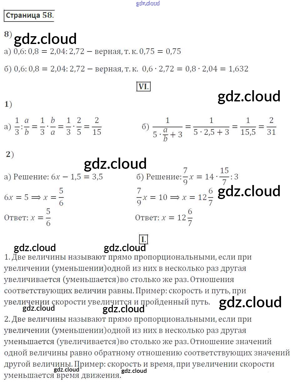 Ответ на задание стр.58 Рабочая тетрадь Математика за 6 (шестой) класс Ерина УМК 2017 Часть 1, 2 ФГОС онлайн и без номера телефона.