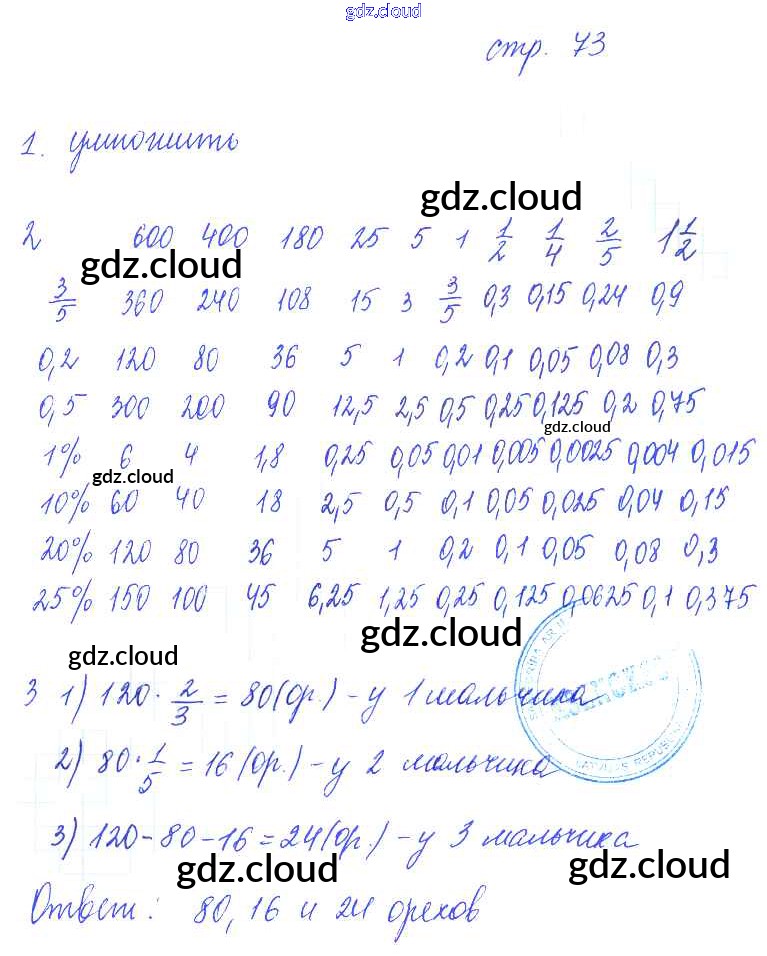 Ответ на задание стр.73 Рабочая тетрадь Математика за 6 (шестой) класс Ерина УМК 2020 Часть 1, 2 ФГОС онлайн и без номера телефона.