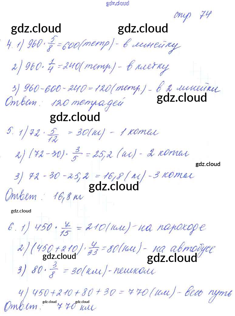 Ответ на задание стр.74 Рабочая тетрадь Математика за 6 (шестой) класс Ерина УМК 2020 Часть 1, 2 ФГОС онлайн и без номера телефона.