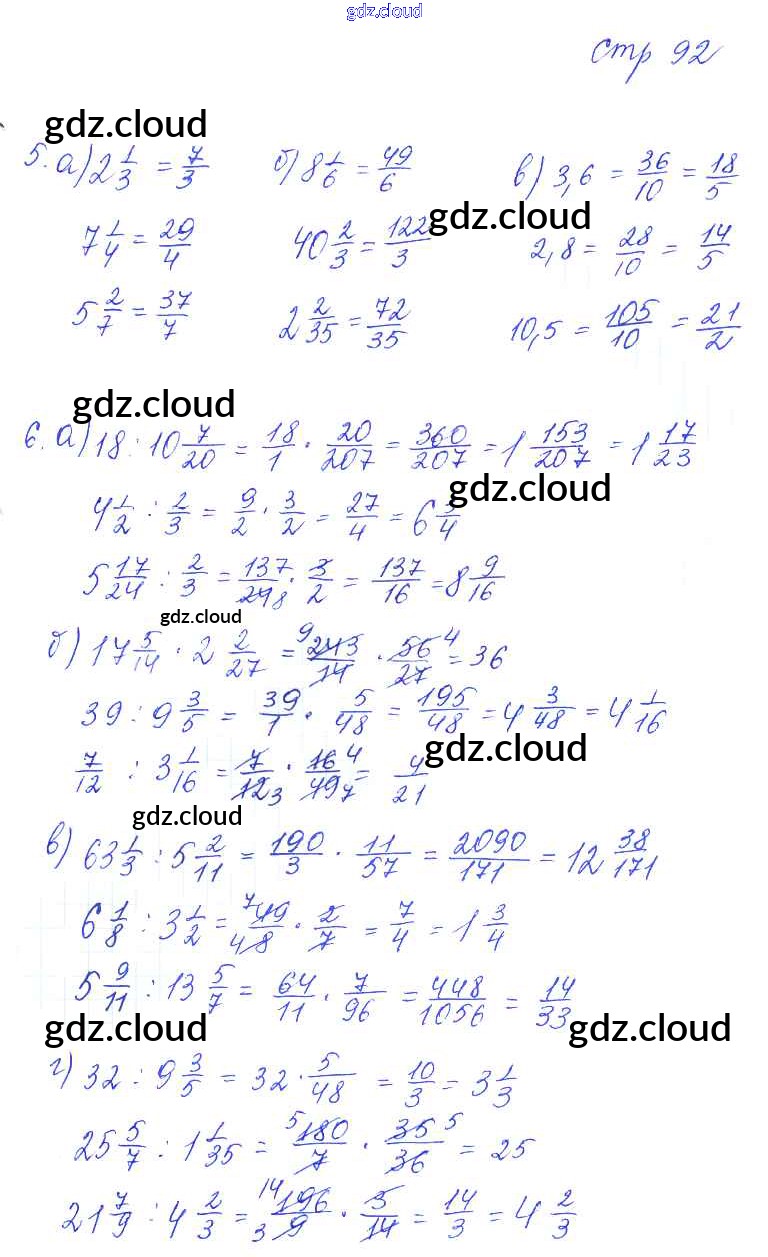 Ответ на задание стр.92 Рабочая тетрадь Математика за 6 (шестой) класс Ерина УМК 2020 Часть 1, 2 ФГОС онлайн и без номера телефона.