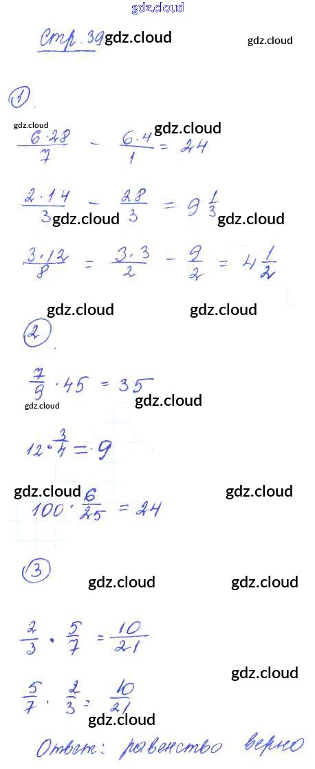 Ответ на задание стр.39 Рабочая тетрадь Математика за 6 (шестой) класс Рудницкая УМК 2013 Часть 1, 2 ФГОС онлайн и без номера телефона.