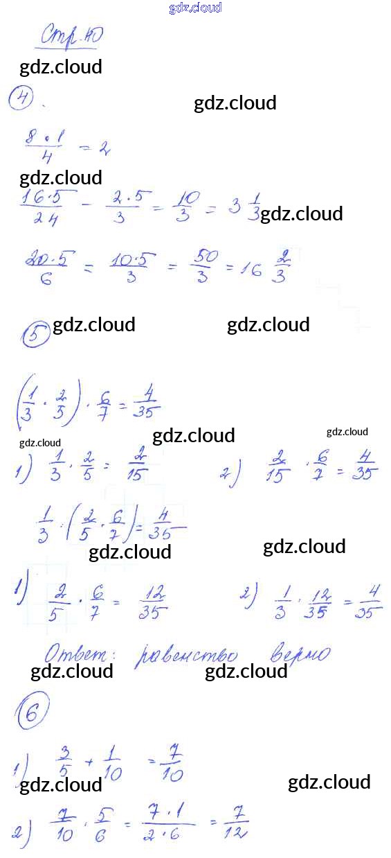 Ответ на задание стр.40 Рабочая тетрадь Математика за 6 (шестой) класс Рудницкая УМК 2013 Часть 1, 2 ФГОС онлайн и без номера телефона.