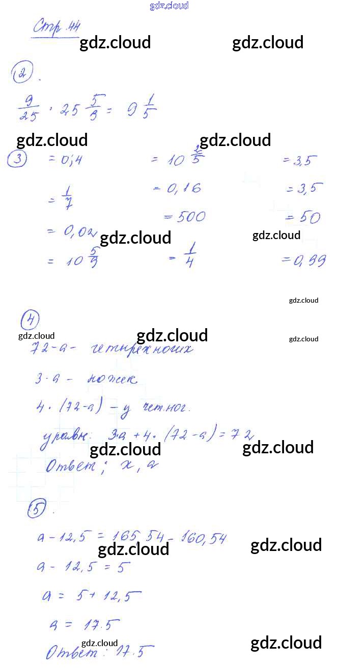 Ответ на задание стр.44 Рабочая тетрадь Математика за 6 (шестой) класс Рудницкая УМК 2013 Часть 1, 2 ФГОС онлайн и без номера телефона.