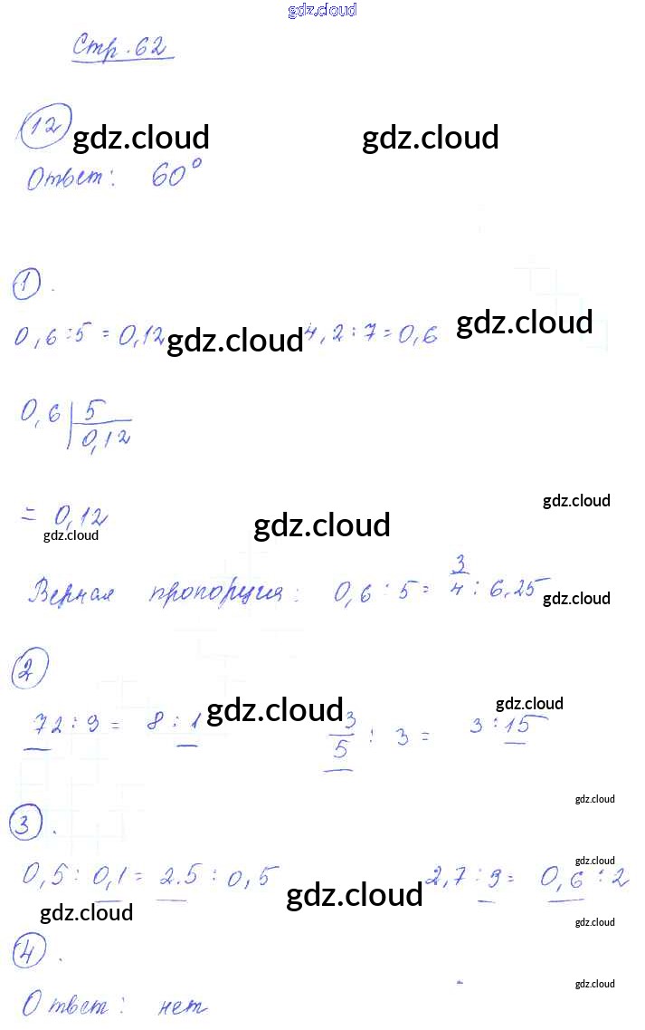 Ответ на задание стр.62 Рабочая тетрадь Математика за 6 (шестой) класс Рудницкая УМК 2013 Часть 1, 2 ФГОС онлайн и без номера телефона.