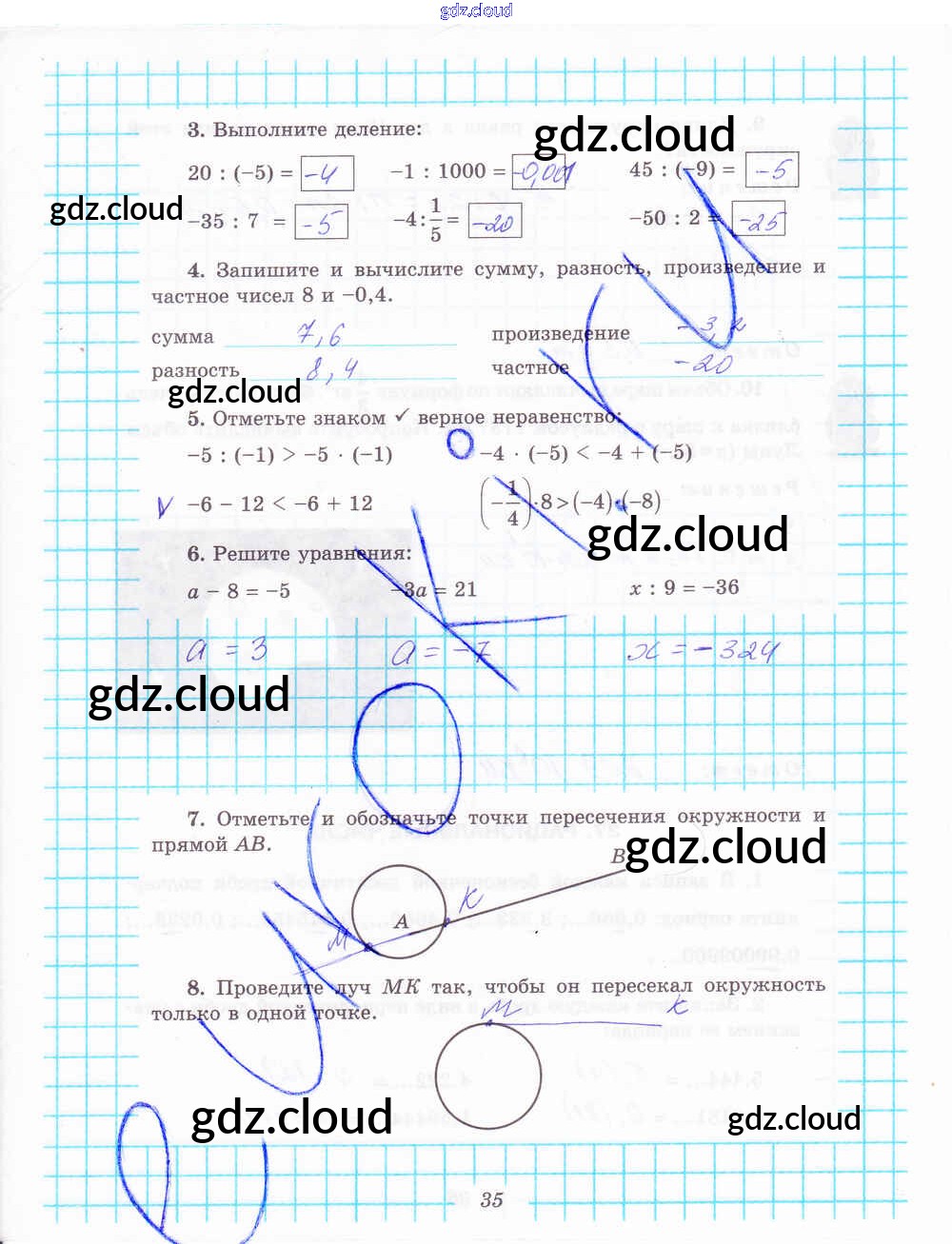 Ответ на задание стр.35 Рабочая тетрадь Математика за 6 (шестой) класс Рудницкая УМК 2013 Часть 1, 2 ФГОС онлайн и без номера телефона.