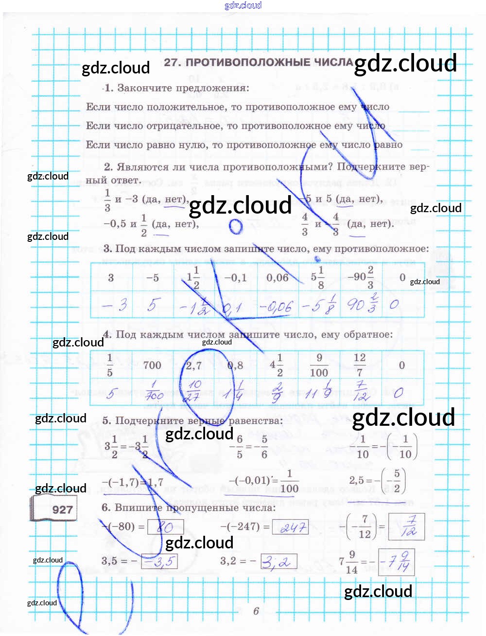 Ответ на задание стр.6 Рабочая тетрадь Математика за 6 (шестой) класс Рудницкая УМК 2013 Часть 1, 2 ФГОС онлайн и без номера телефона.