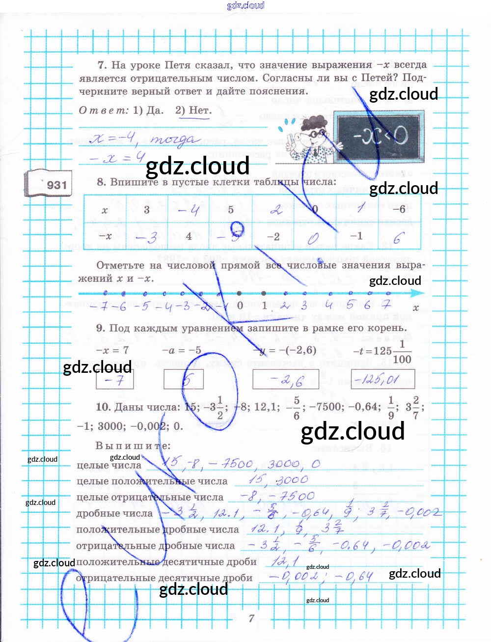 Ответ на задание стр.7 Рабочая тетрадь Математика за 6 (шестой) класс Рудницкая УМК 2013 Часть 1, 2 ФГОС онлайн и без номера телефона.