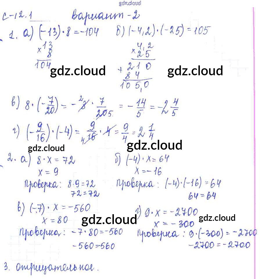 1. Варианты Ответы к СР-12 по Математике 6 класс Самостоятельные работы Зубарева УМК Мнемозина