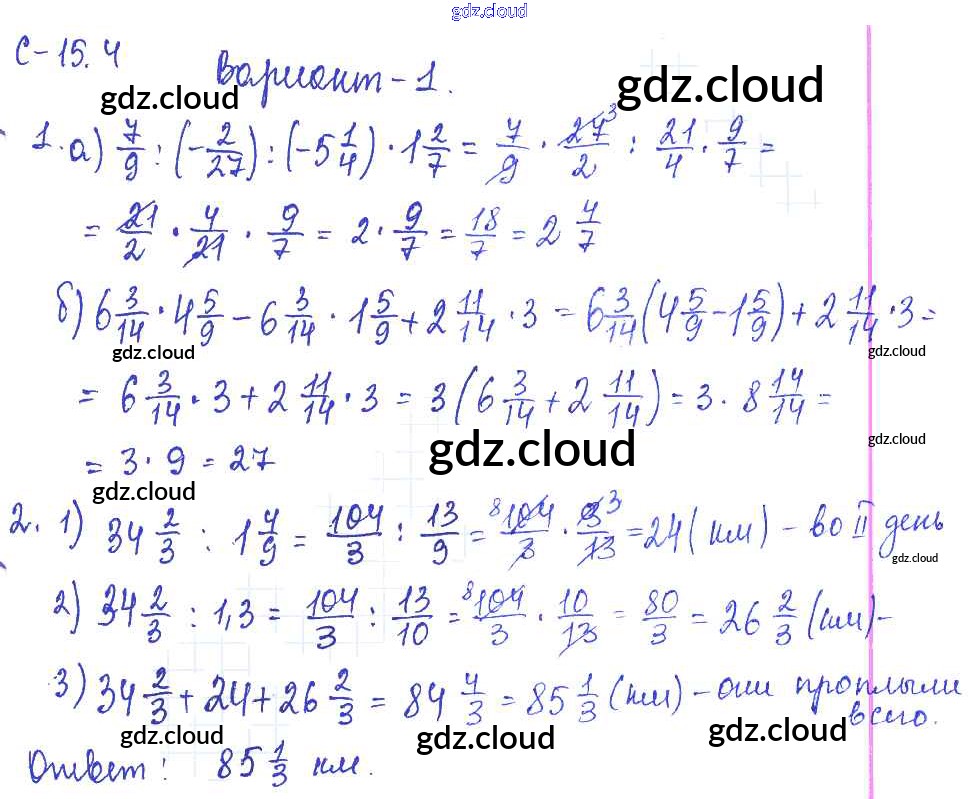 4. Варианты Ответы к СР-15 по Математике 6 класс Самостоятельные работы Зубарева УМК Мнемозина