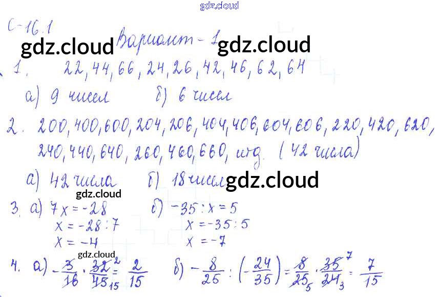 1. Варианты Ответы к СР-16 по Математике 6 класс Самостоятельные работы Зубарева УМК Мнемозина