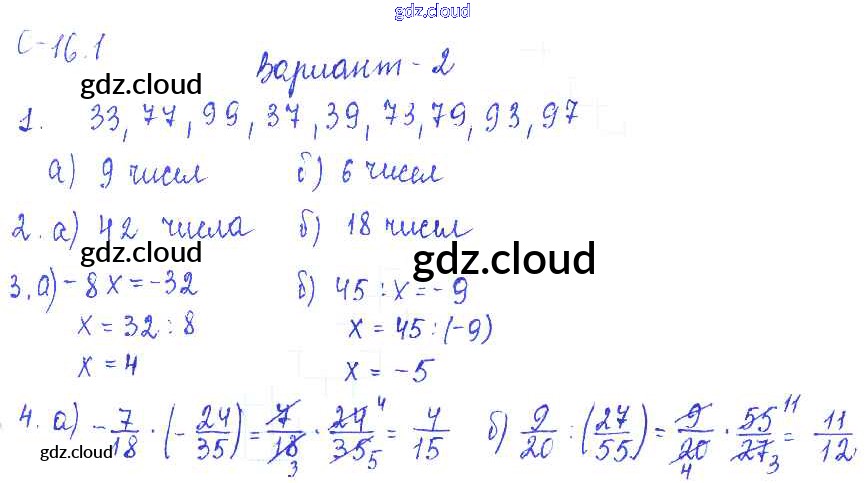 1. Варианты Ответы к СР-16 по Математике 6 класс Самостоятельные работы Зубарева УМК Мнемозина