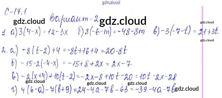 1. Варианты Ответы к СР-17 по Математике 6 класс Самостоятельные работы Зубарева УМК Мнемозина