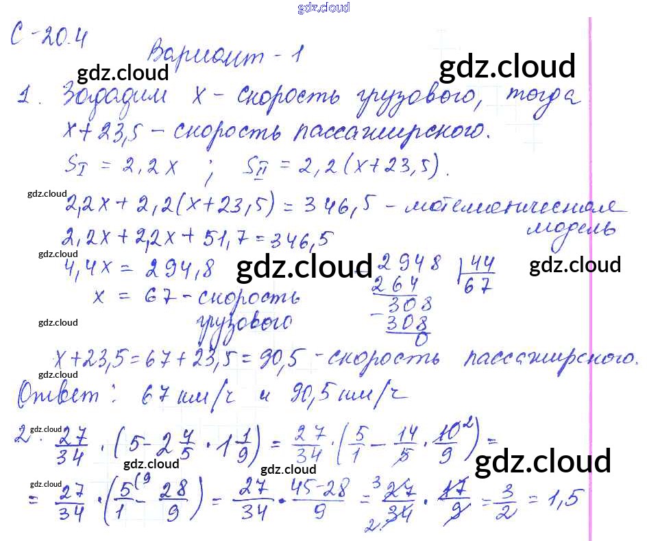 4. Варианты Ответы к СР-20 по Математике 6 класс Самостоятельные работы Зубарева УМК Мнемозина