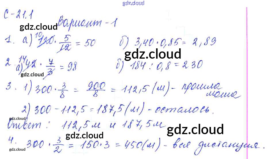 1. Варианты Ответы к СР-21 по Математике 6 класс Самостоятельные работы Зубарева УМК Мнемозина