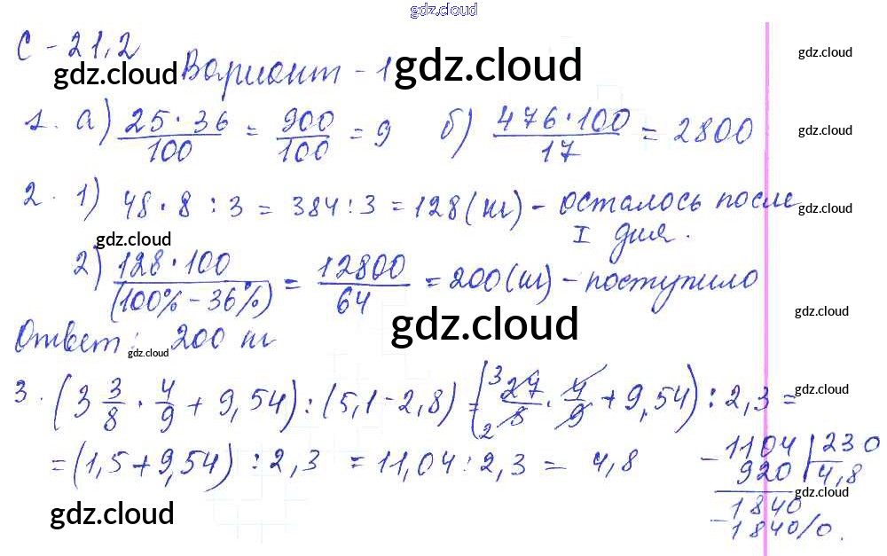 2. Варианты Ответы к СР-21 по Математике 6 класс Самостоятельные работы Зубарева УМК Мнемозина