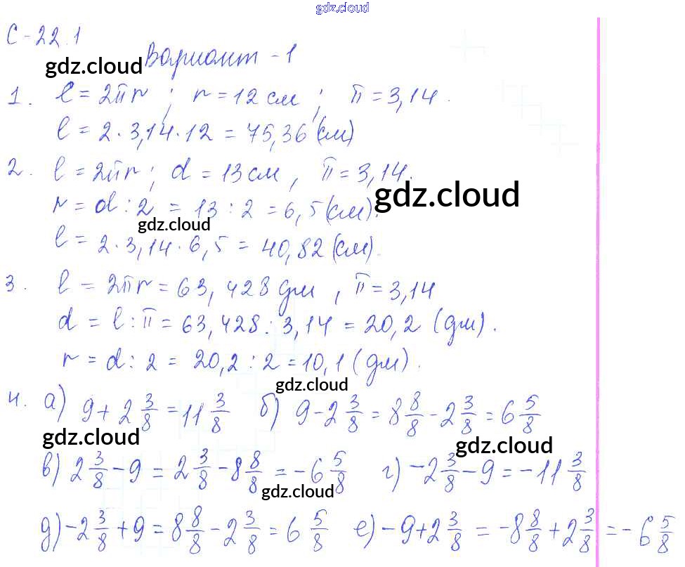 1. Варианты Ответы к СР-22 по Математике 6 класс Самостоятельные работы Зубарева УМК Мнемозина