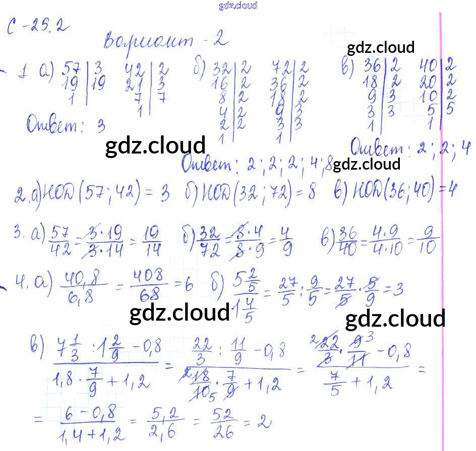 2. Варианты Ответы к СР-25 по Математике 6 класс Самостоятельные работы Зубарева УМК Мнемозина