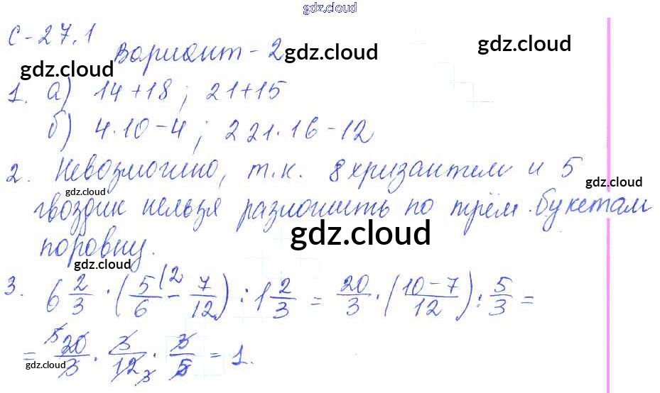 1. Варианты Ответы к СР-27 по Математике 6 класс Самостоятельные работы Зубарева УМК Мнемозина
