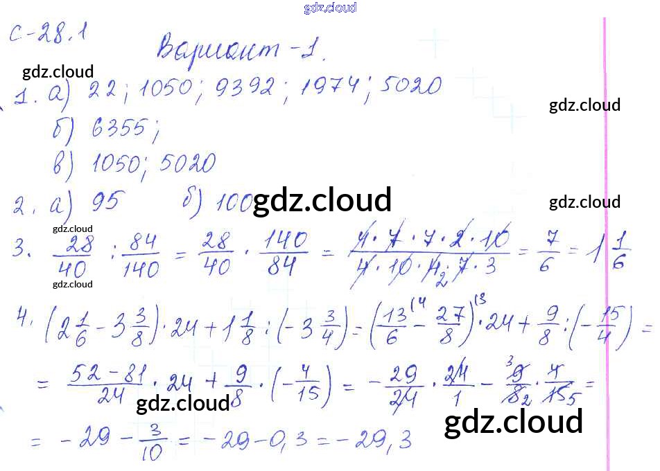 1. Варианты Ответы к СР-28 по Математике 6 класс Самостоятельные работы Зубарева УМК Мнемозина