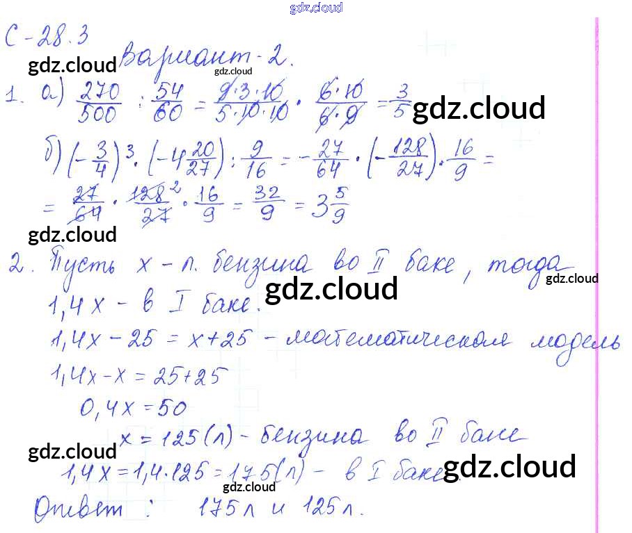 3. Варианты Ответы к СР-28 по Математике 6 класс Самостоятельные работы Зубарева УМК Мнемозина