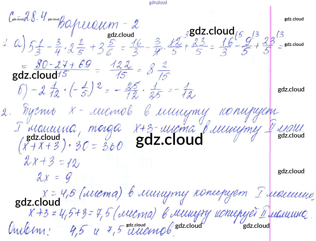 4. Варианты Ответы к СР-28 по Математике 6 класс Самостоятельные работы Зубарева УМК Мнемозина