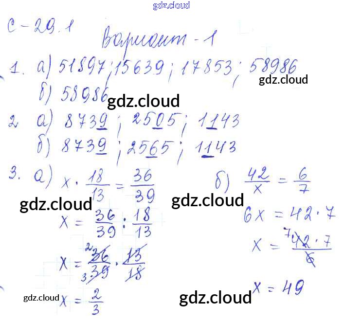 1. Варианты Ответы к СР-29 по Математике 6 класс Самостоятельные работы Зубарева УМК Мнемозина