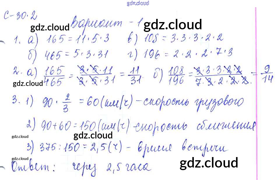 2. Варианты Ответы к СР-30 по Математике 6 класс Самостоятельные работы Зубарева УМК Мнемозина