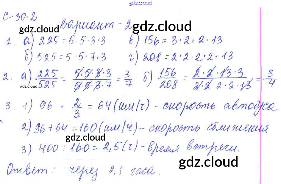 2. Варианты Ответы к СР-30 по Математике 6 класс Самостоятельные работы Зубарева УМК Мнемозина