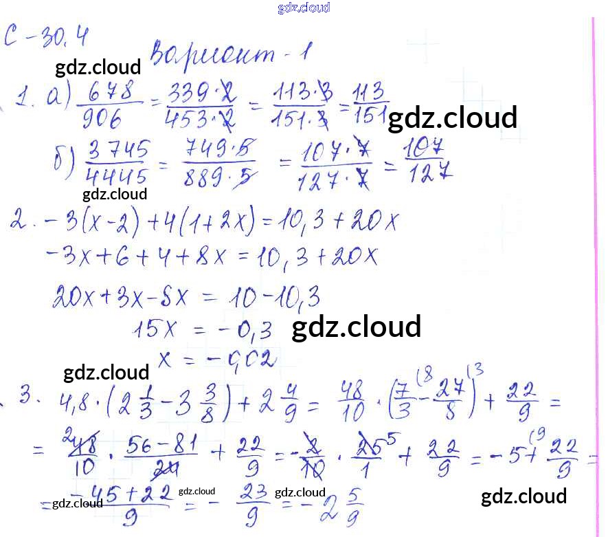 4. Варианты Ответы к СР-30 по Математике 6 класс Самостоятельные работы Зубарева УМК Мнемозина