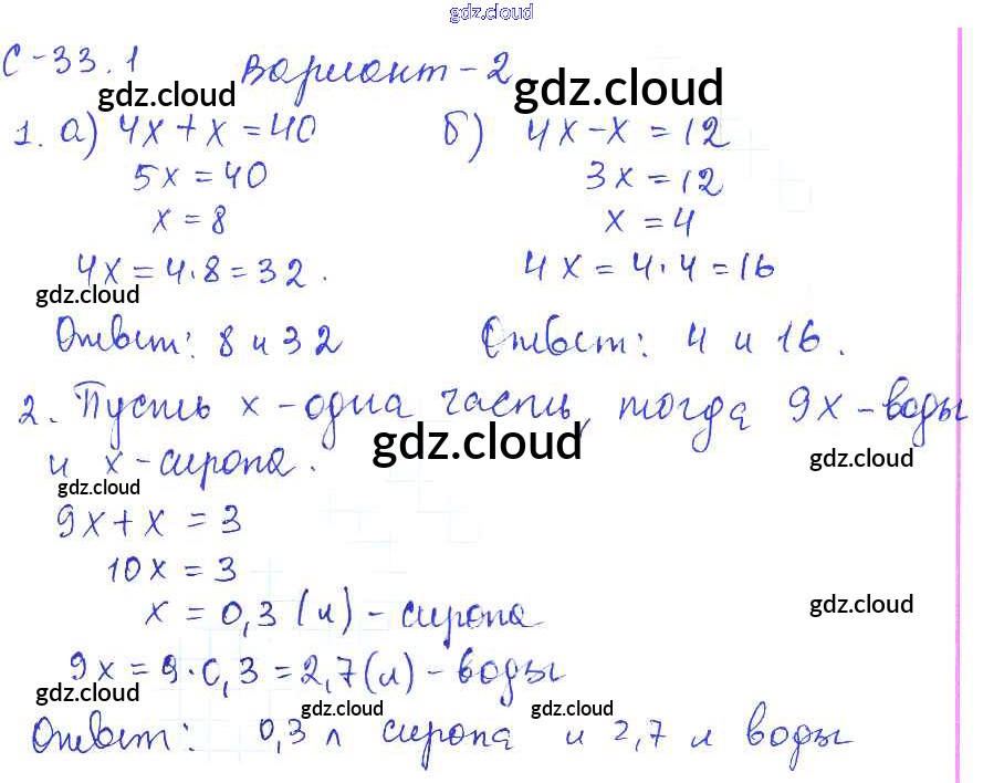 1. Варианты Ответы к СР-33 по Математике 6 класс Самостоятельные работы Зубарева УМК Мнемозина