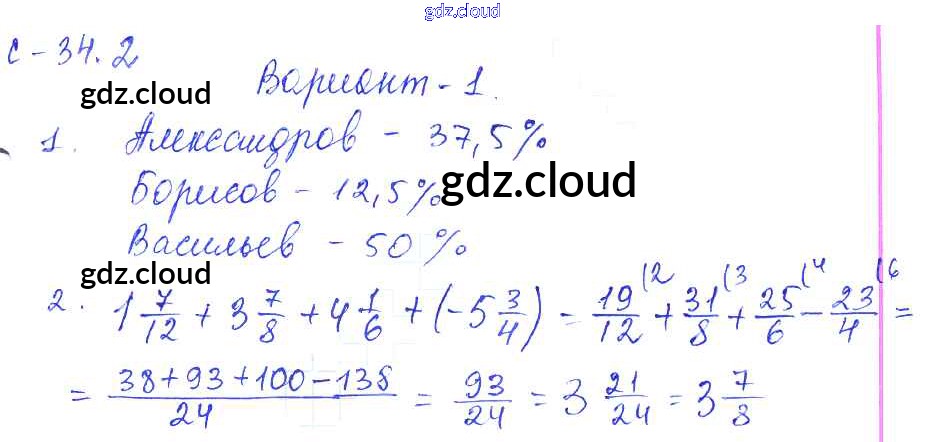 2. Варианты Ответы к СР-34 по Математике 6 класс Самостоятельные работы Зубарева УМК Мнемозина