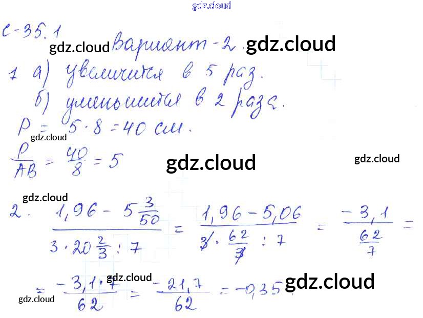 1. Варианты Ответы к СР-35 по Математике 6 класс Самостоятельные работы Зубарева УМК Мнемозина