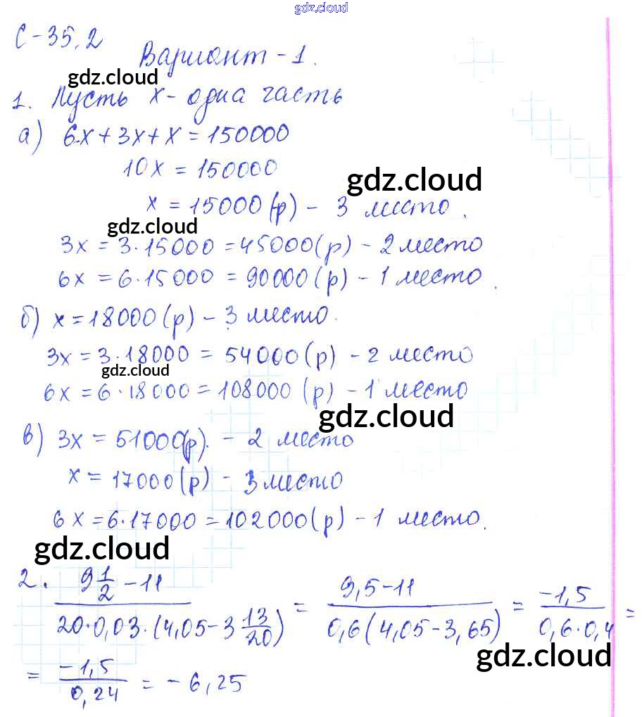 2. Варианты Ответы к СР-35 по Математике 6 класс Самостоятельные работы Зубарева УМК Мнемозина