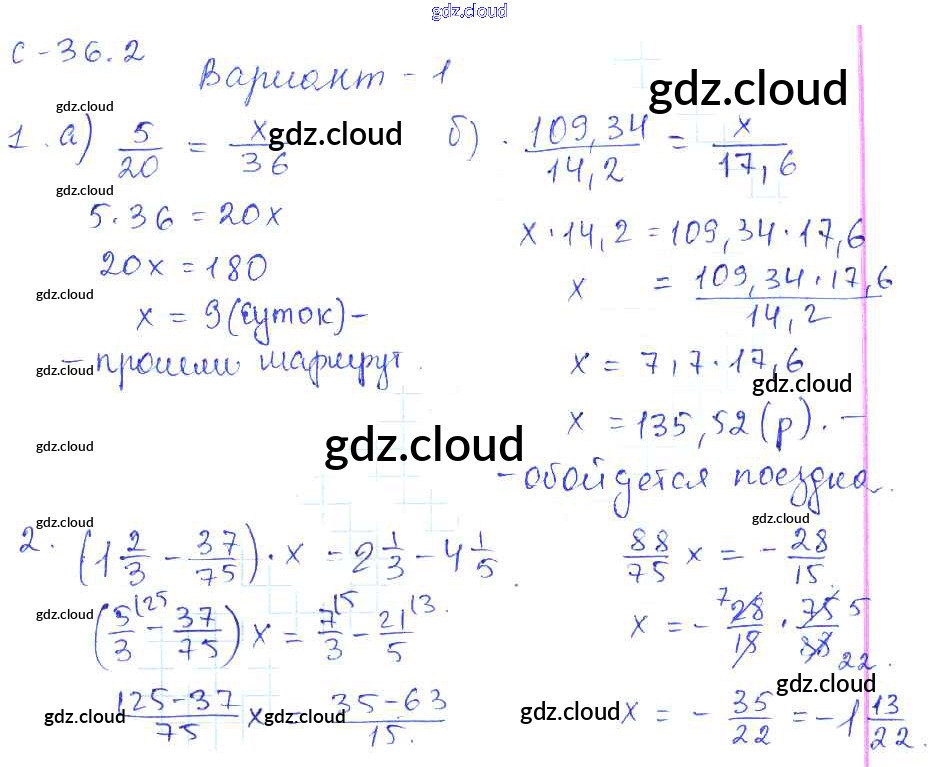 2. Варианты Ответы к СР-36 по Математике 6 класс Самостоятельные работы Зубарева УМК Мнемозина