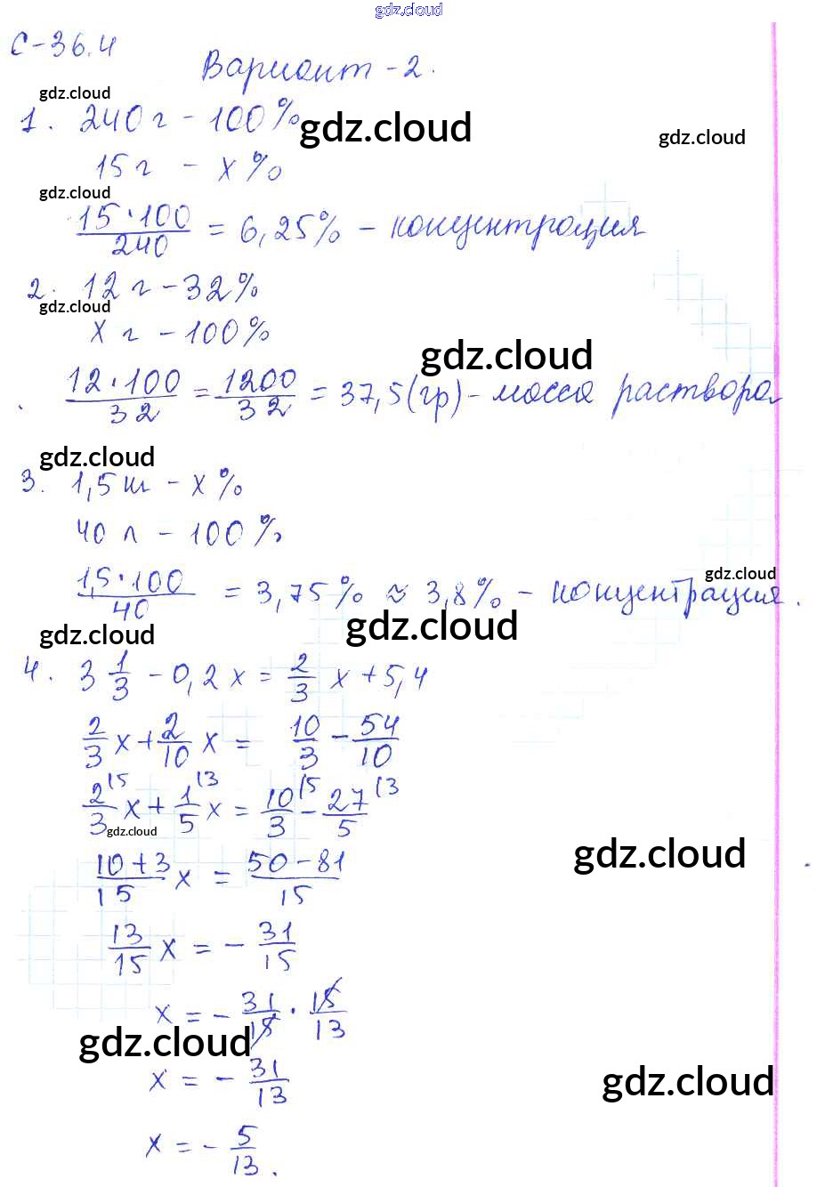 4. Варианты Ответы к СР-36 по Математике 6 класс Самостоятельные работы Зубарева УМК Мнемозина