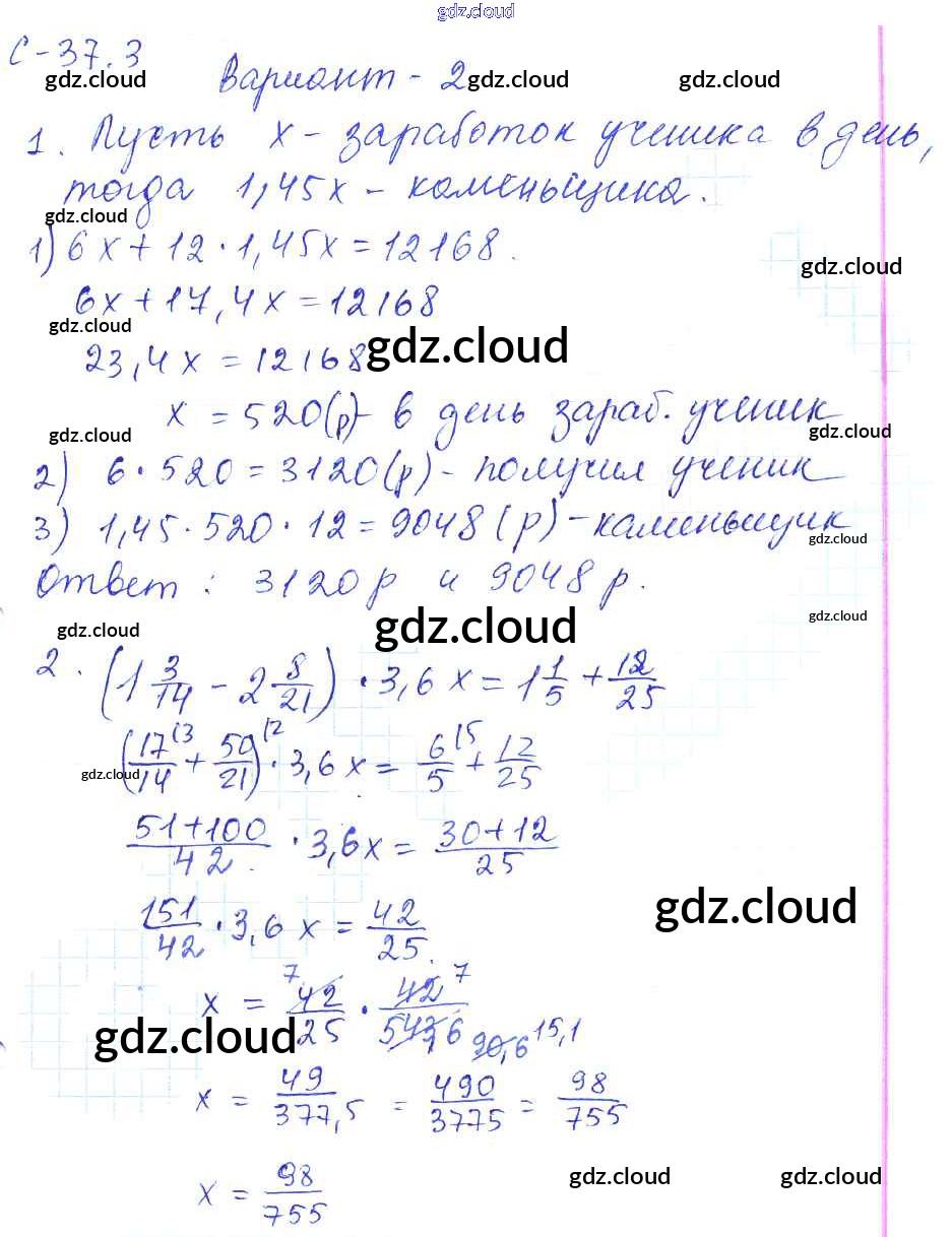 3. Варианты Ответы к СР-37 по Математике 6 класс Самостоятельные работы Зубарева УМК Мнемозина