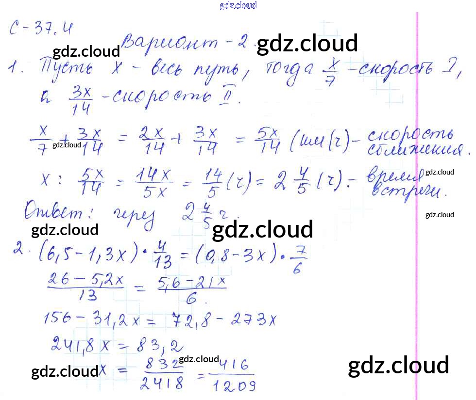 4. Варианты Ответы к СР-37 по Математике 6 класс Самостоятельные работы Зубарева УМК Мнемозина