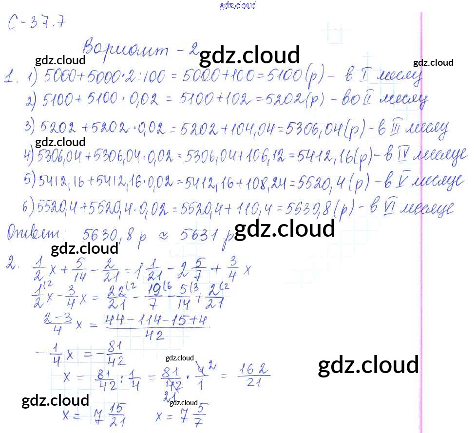 7. Варианты Ответы к СР-37 по Математике 6 класс Самостоятельные работы Зубарева УМК Мнемозина