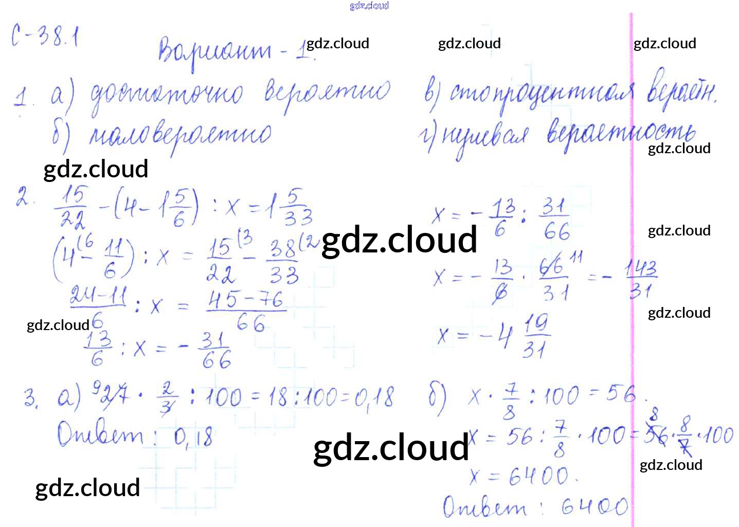 1. Варианты Ответы к СР-38 по Математике 6 класс Самостоятельные работы Зубарева УМК Мнемозина