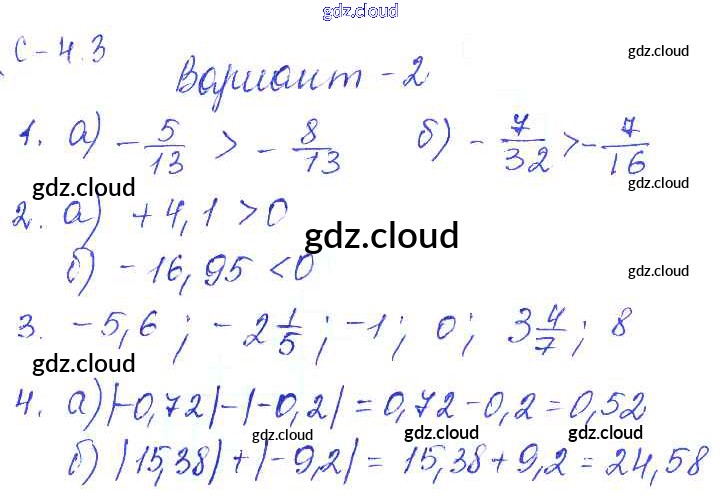 3. Варианты Ответы к СР-4 по Математике 6 класс Самостоятельные работы Зубарева УМК Мнемозина