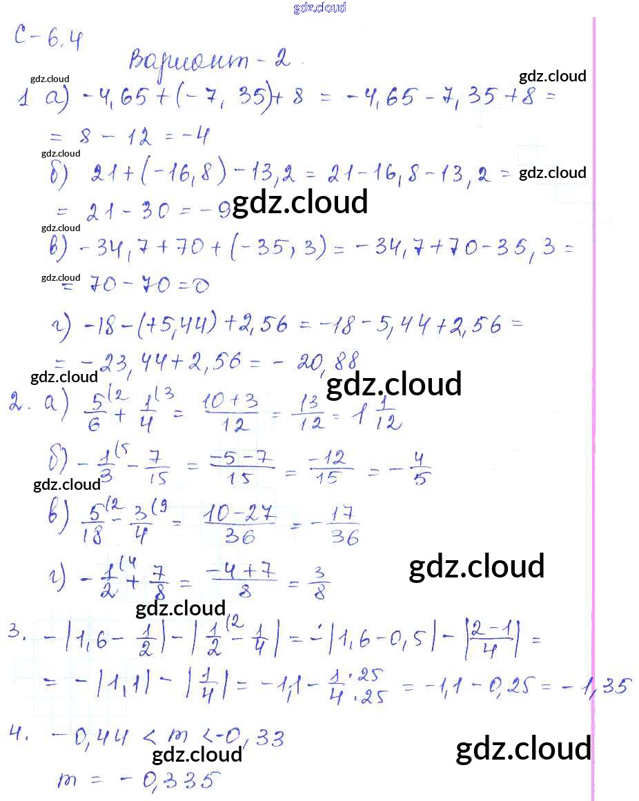 4. Варианты Ответы к СР-6 по Математике 6 класс Самостоятельные работы Зубарева УМК Мнемозина