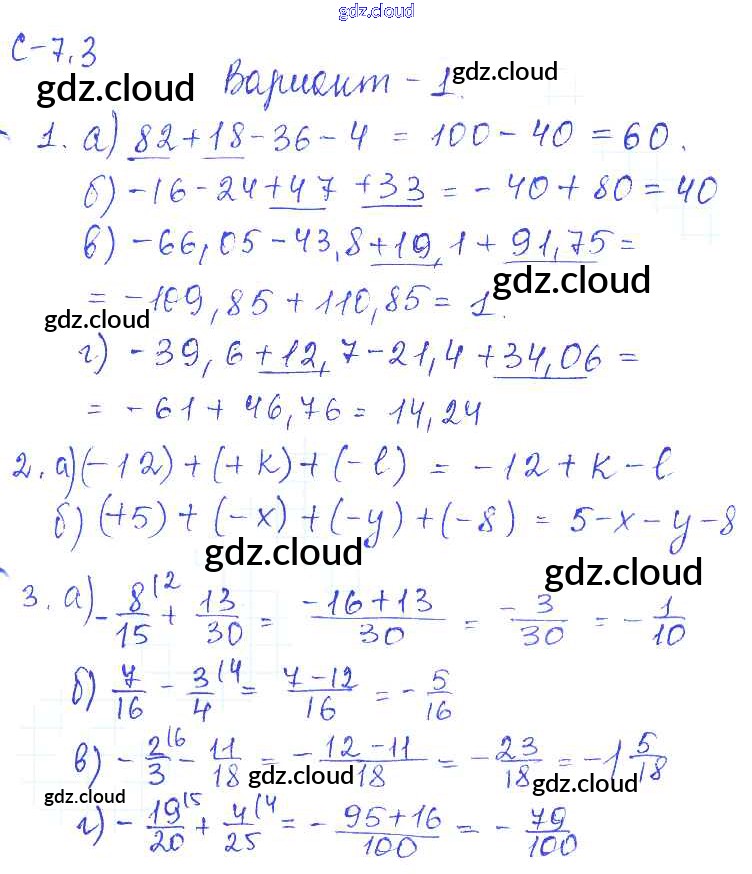 3. Варианты Ответы к СР-7 по Математике 6 класс Самостоятельные работы Зубарева УМК Мнемозина