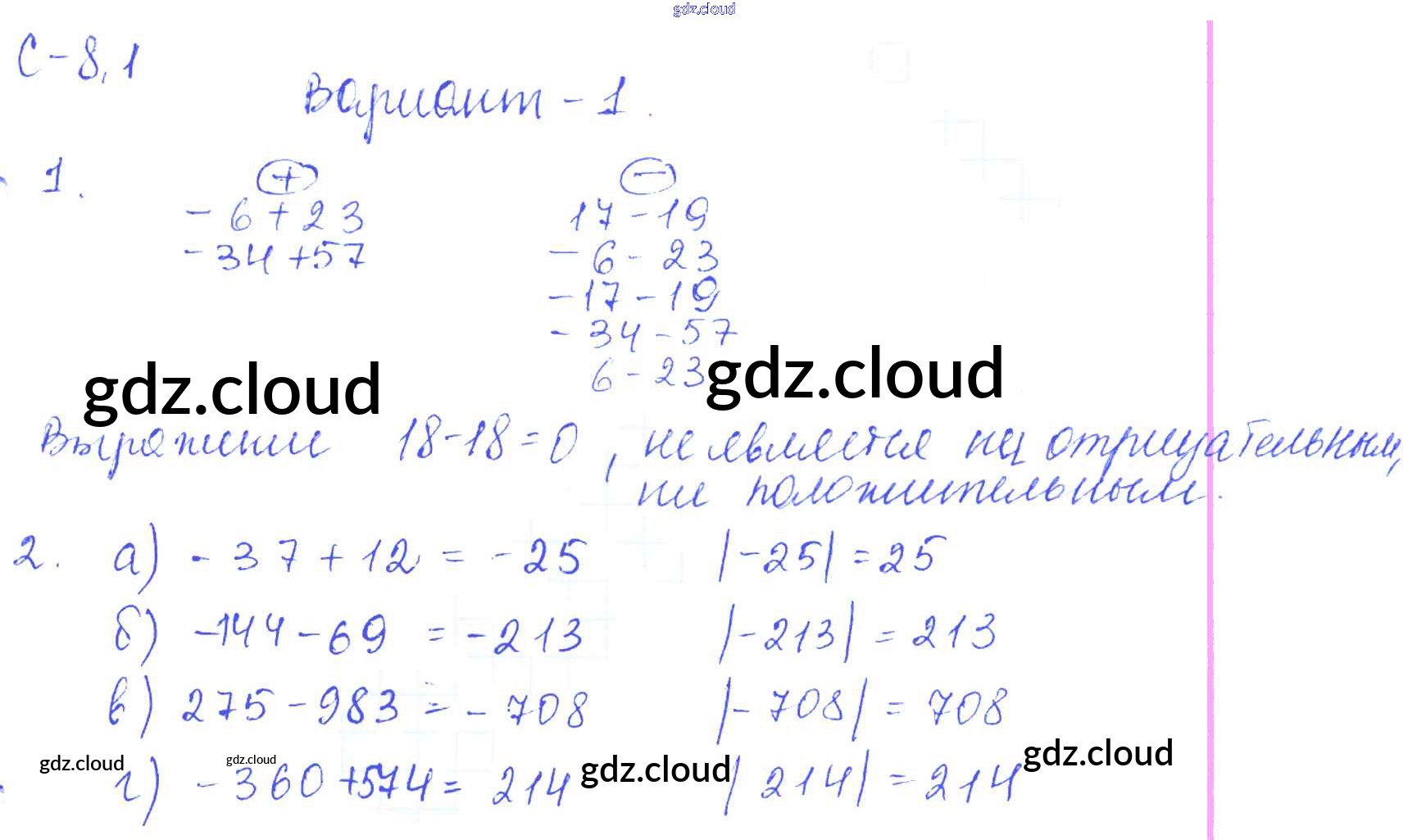 1. Варианты Ответы к СР-8 по Математике 6 класс Самостоятельные работы Зубарева УМК Мнемозина