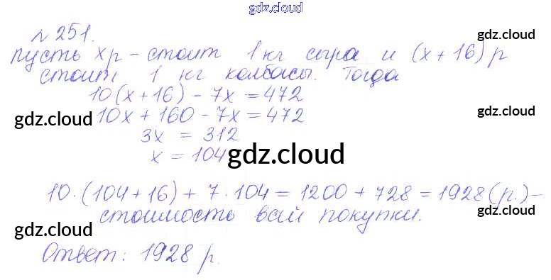 Ответ на задание 251 Сборник задач и упражнений Математика за 6 (шестой) класс Гамбарин, Зубарева 2011