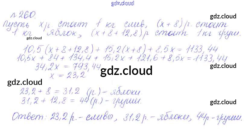 Ответ на задание 260 Сборник задач и упражнений Математика за 6 (шестой) класс Гамбарин, Зубарева 2011
