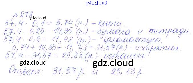 Ответ на задание 278 Сборник задач и упражнений Математика за 6 (шестой) класс Гамбарин, Зубарева 2011